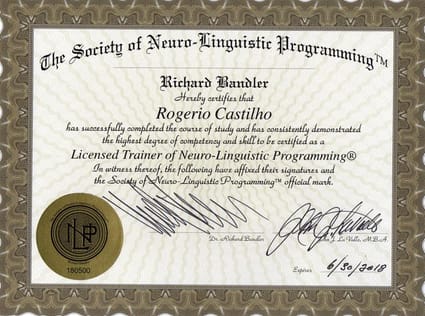 Treinado pessoalmente e licenciado por Richard Bandler, co-criador da Programação Neurolinguística.